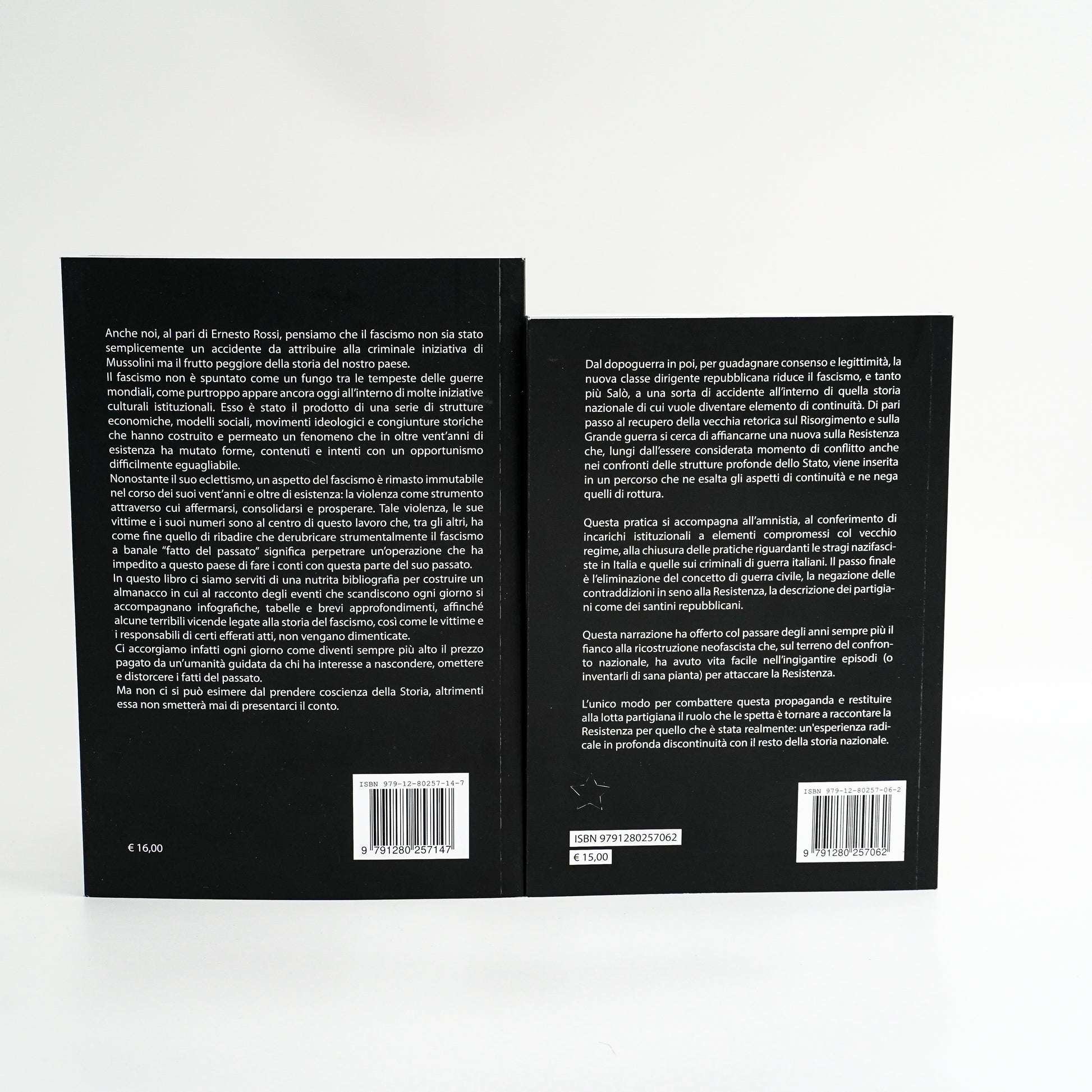 Con il box "Fascisti e antifascisti" affrontiamo a tutto tondo la questione del Ventennio fascista, dallo squadrismo degli esordi alla Resistenza, grazie ai nostri due testi: Ventennio di sangue, uscito a dicembre 2022, e Partigiani Contro, ritornato disponibile con la sua nuova ristampa.