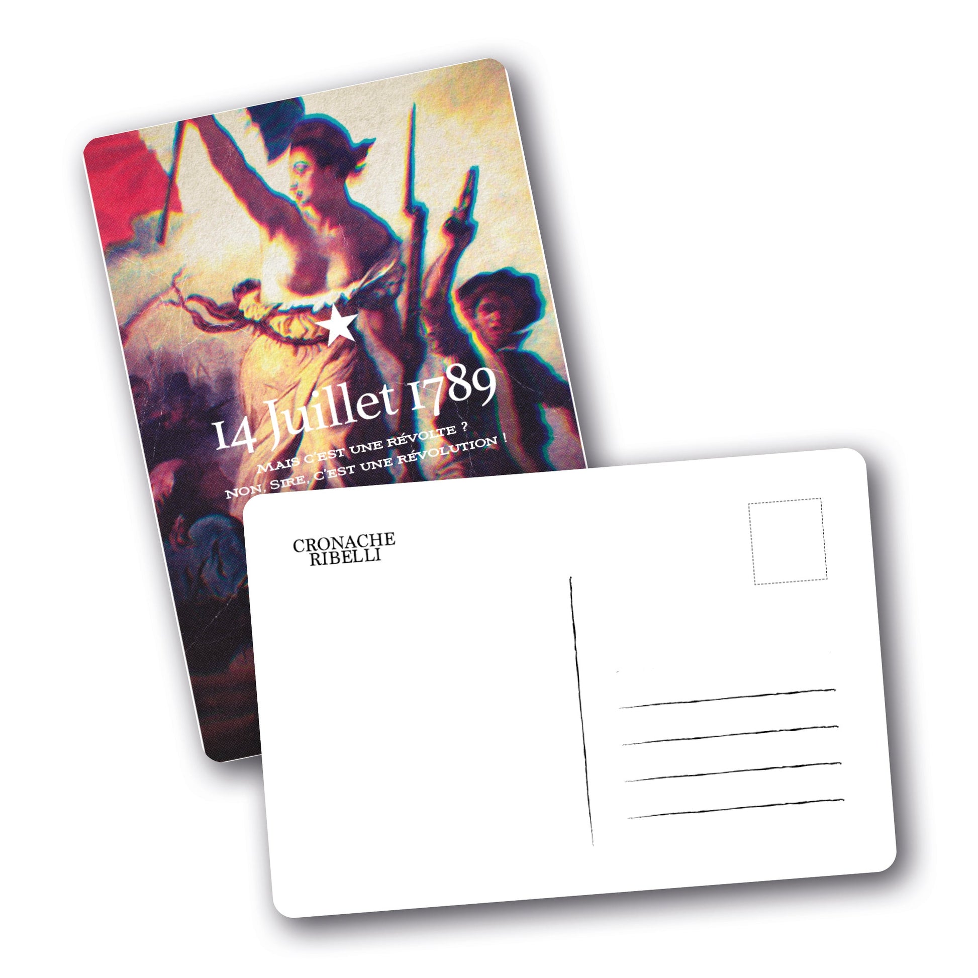 Questa cartolina è dedicata al 14 luglio 1789, data simbolo della Rivoluzione francese.