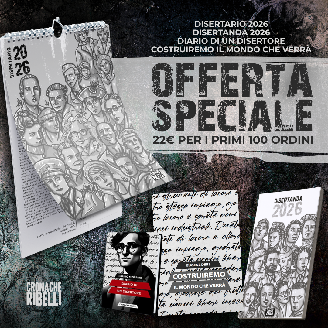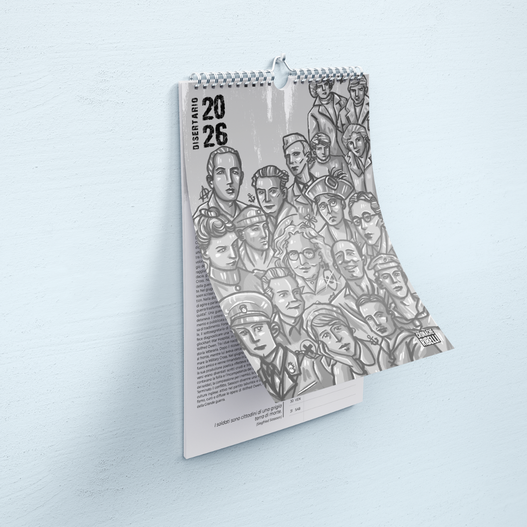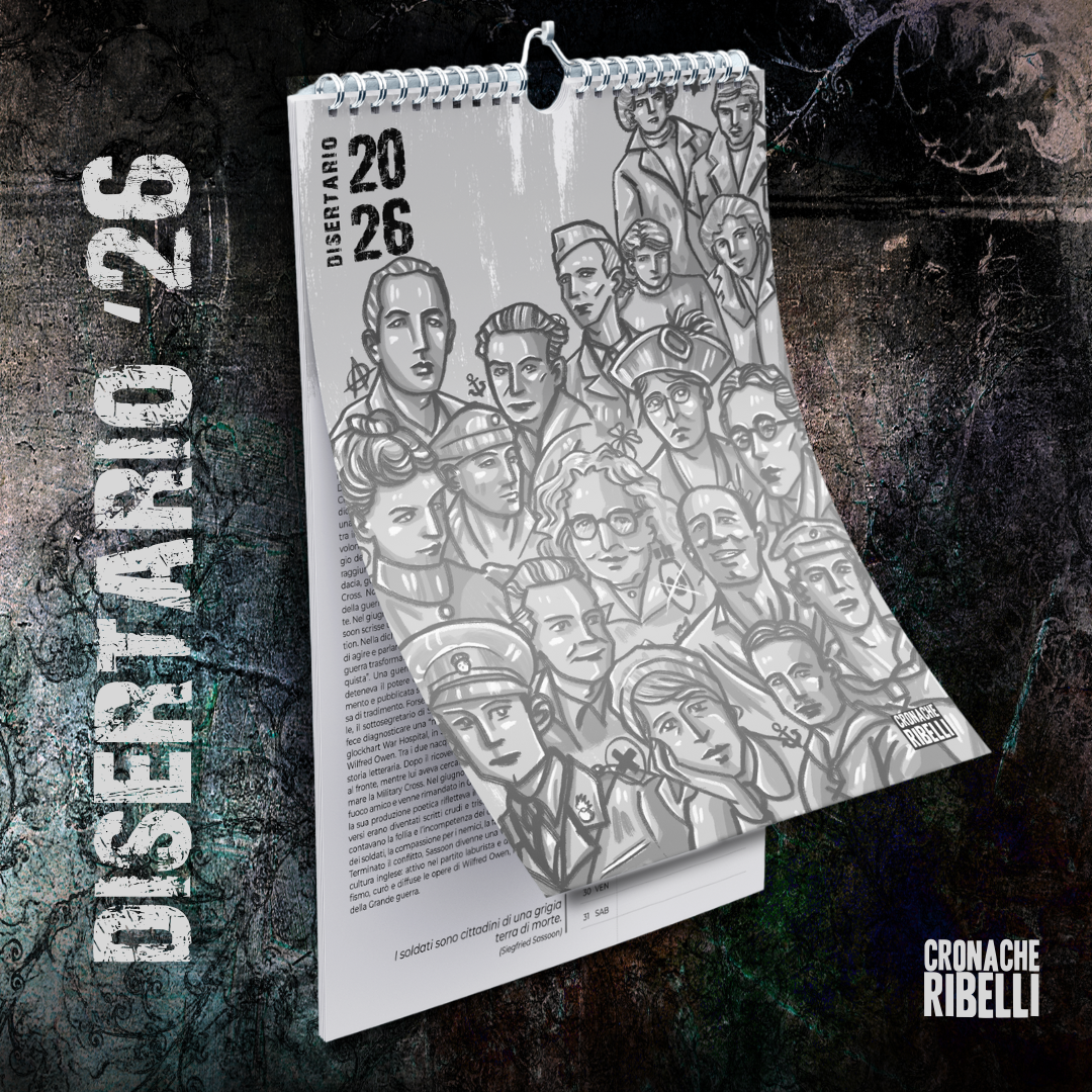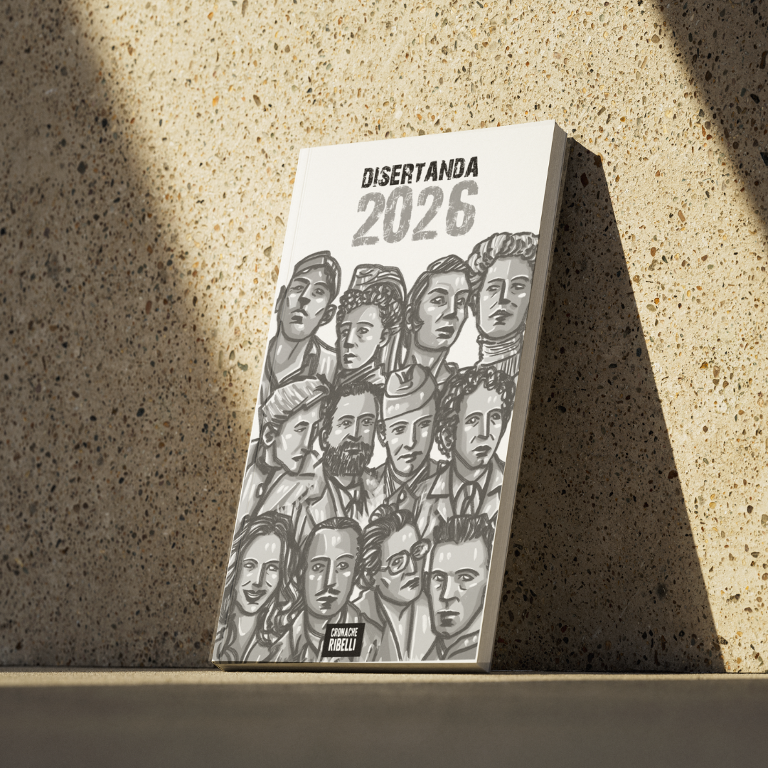 Quest'anno i nostri calendari e agende sono dedicati alle persone che hanno disertato le guerre dei potenti per combattere l'unica battaglia che conta: quella per l'emancipazione dell'umanità. Il "Disertario" e la "Disertanda" ci accompagneranno per tutto il 2026 con tante citazioni contro la guerra e storie mensili di donne e uomini che hanno detto no all'odio tra i popoli e sì alla solidarietà tra gli oppressi.