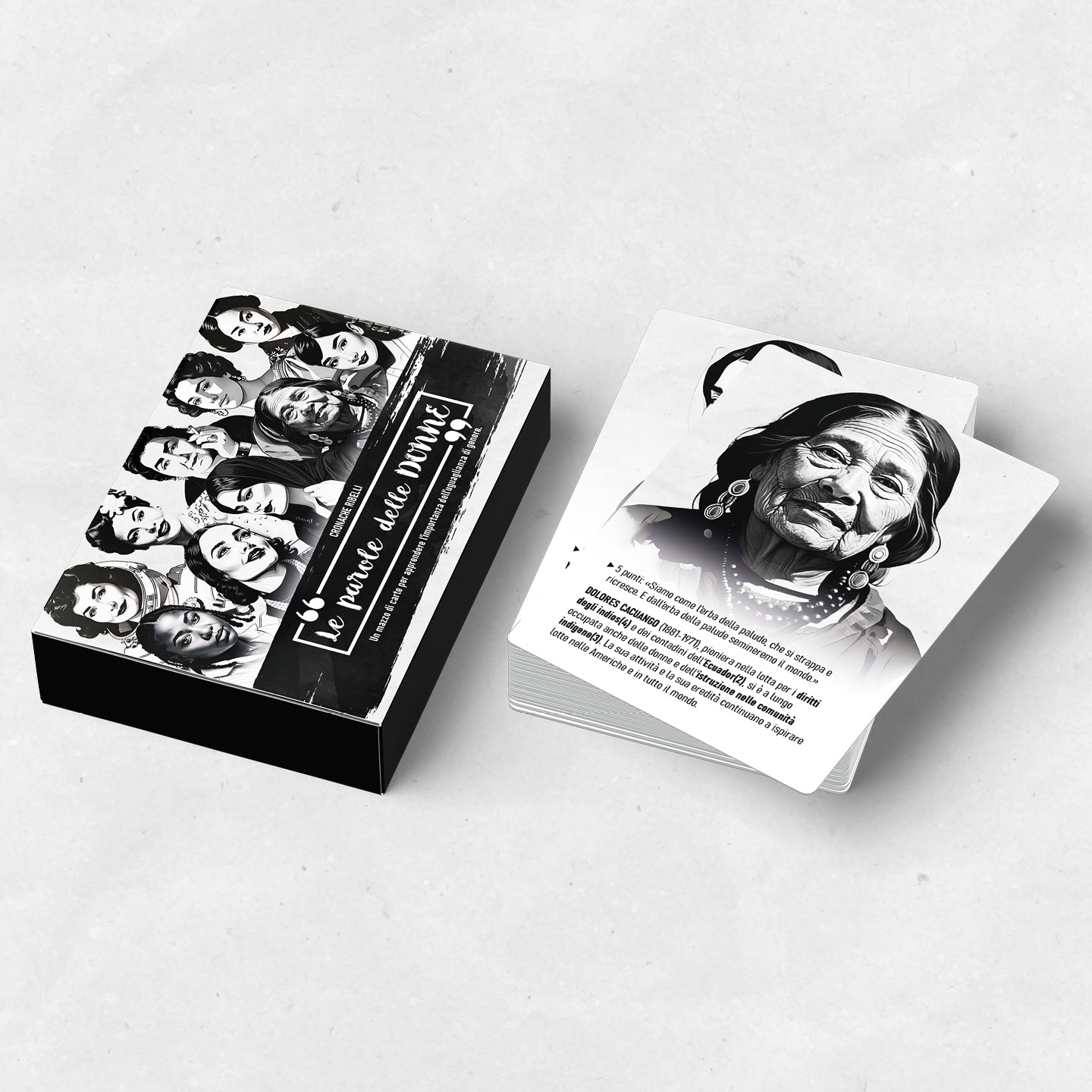 “Le parole delle donne” è un gioco da tavolo che ha come obiettivo quello di invertire questa tendenza. Attraverso cento carte vengono raccontate cento storie di figure femminili provenienti da epoche, luoghi e contesti sociali diversi. Ogni carta presenta una donna, una breve nota biografica e una sola frase, capace però di aprire riflessioni, domande, curiosità. Attraverso due modalità di gioco “Le parole delle donne” diventa uno strumento per imparare, per confrontarsi, per divertirsi.