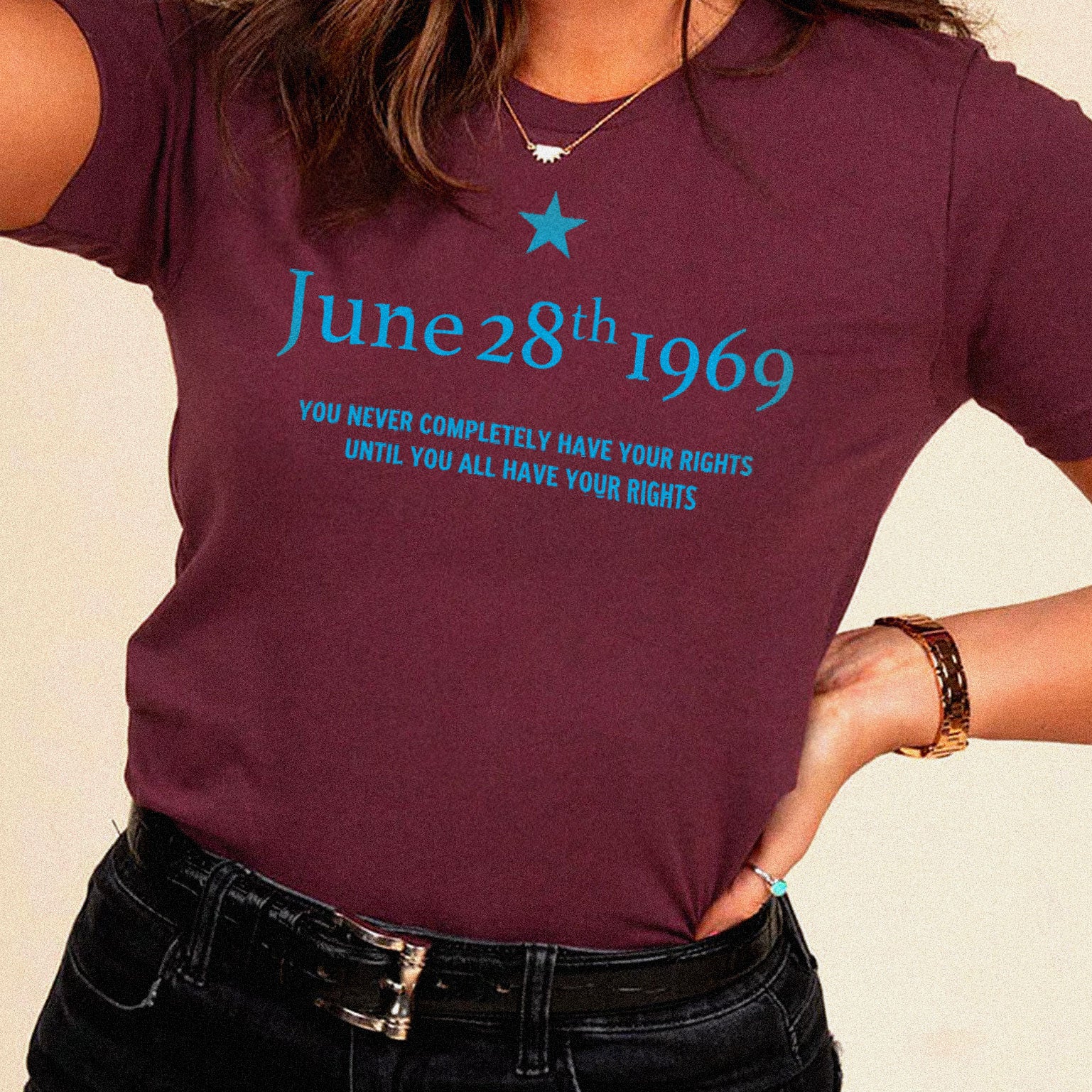 Maglietta 28 giugno - Moti di Stonewall - You never completely have your rights, until you all have your rights + Debs
