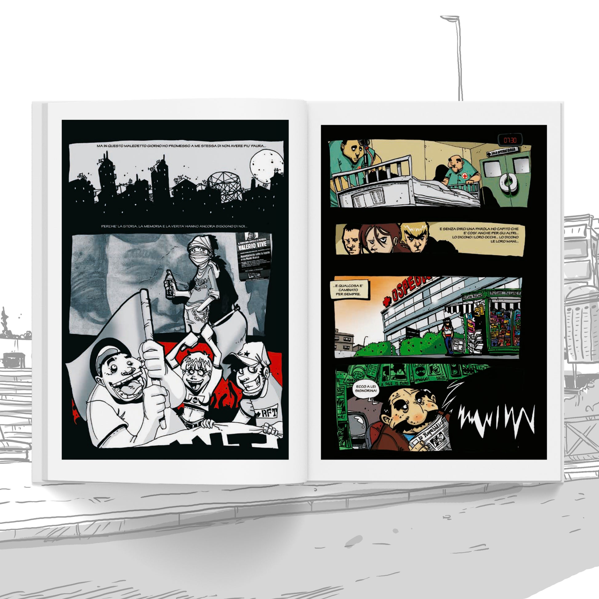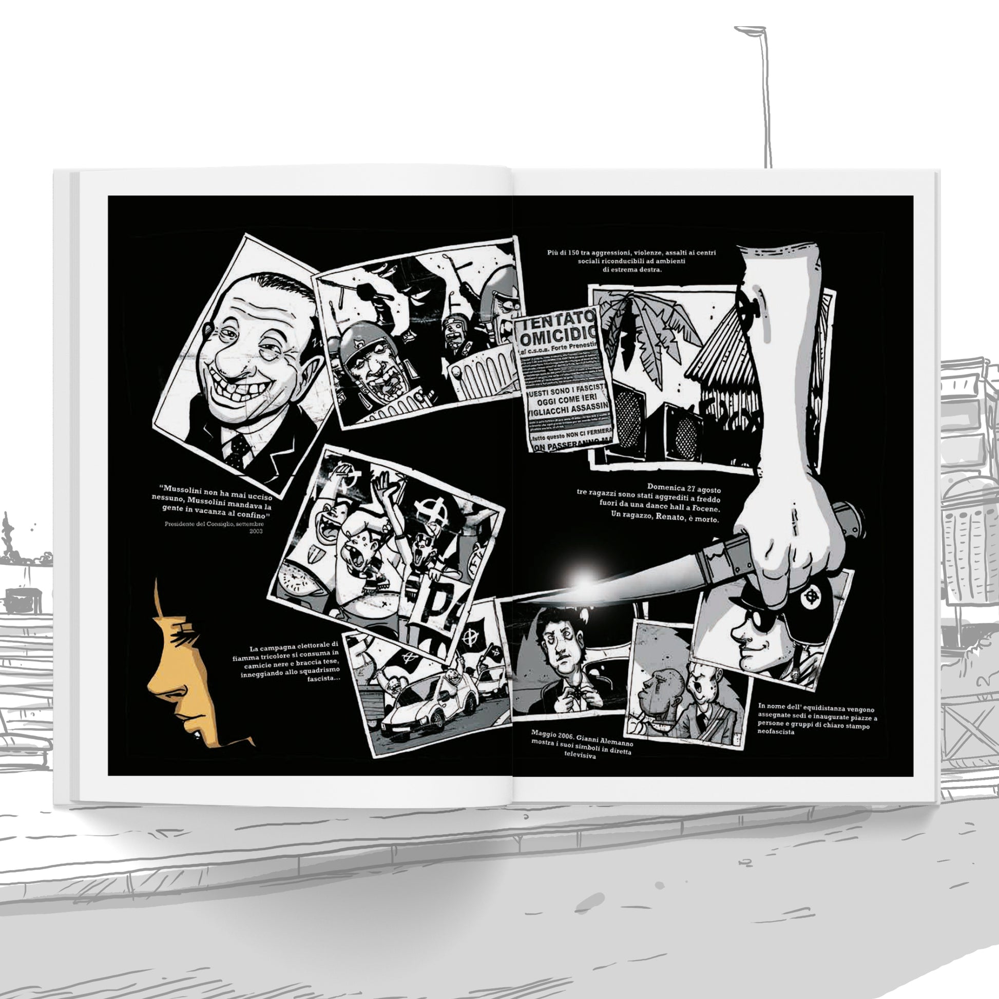 Nel 2006 a Focene, nella periferia di Roma, Renato viene ucciso da due giovani neofascisti: “un diverso”, “una zecca” estranea al quartiere. Nel 2016 Prossima fermata (di Erre Push e Zerocalcare) come parte della campagna Io non dimentico racconta lo slittamento a destra del paese: razzismo e populismo crescenti, precarietà come unico orizzonte, politiche di austerity che colpiscono milioni di persone e una negazione dei diritti che spiana la strada al neoliberismo. Un fumetto, un viaggio a ritroso nel tempo, un appello contro l’oblio, una storia per Renato e per chi non dimentica e continua a lottare.